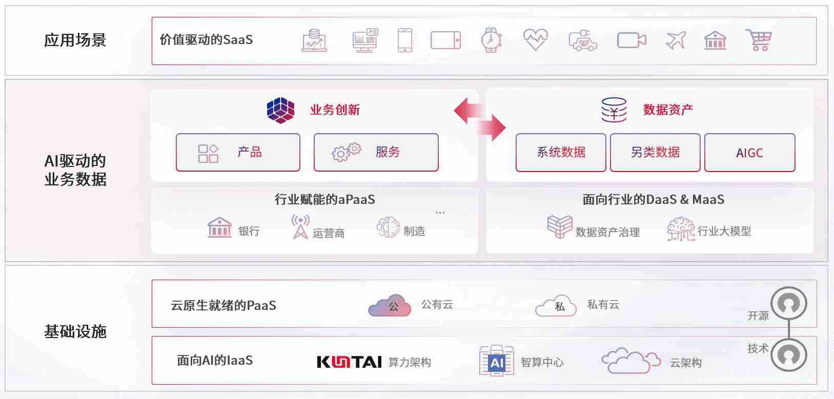 数字时代,,,围绕企业数字化转型的关键要素,,,,bv伟德国际1946数码开创性的提出数云融合战略和技术体系框架,,,,着力在云原生、、数字原生、、AI原生和信创产业上架构产品和服务能力,,,为处在不同数字化转型阶段的快消零售、、汽车、、金融、、、、医疗、、政企、、、教育、、运营商等行业客户提供泛在的敏捷IT能力和融合的数据驱动能力,,构建跨界融合创新的数字业务场景和新业务模式,,,,助力企业级客户建立面向未来的核心能力和竞争优势,,,,全面推动社会的数字化、、智能化转型升级。。。